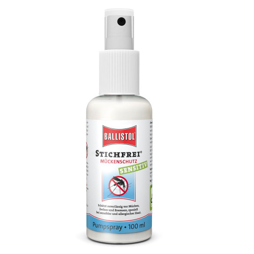 Ballistol Stichfrei sensitiv ist ein Insektenschutz, der speziell für die empfindliche Haut entwickelt wurde. Das Spray enthält eine milde und hautfreundliche Rezeptur und einen gut verträglichen Wirkstoff. Stichfrei Ballistol ist frei von ätherischen Ölen, Parfum, Farb-, Duft- und Konservierungsstoffen. Ballistol Stichfrei sensitiv ist daher die perfekte Wahl