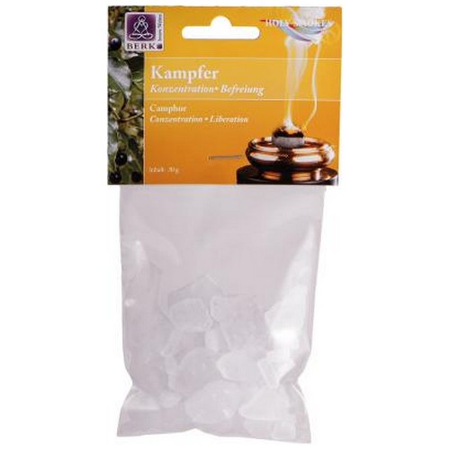 Kampfer wurde traditionell zur Reinigung von Räumen verwendet. Sein Duft ist sehr frisch, befreiend und belebend. Geeignet bei aufkommenden Erkältungskrankheiten. Zum Räuchern auf Kohle oder Sieb.