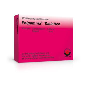 Folgamma® Tabletten. Wirkstoffe: Folsäure 1,5 mg, Cyanocobalamin 25μg. Anwendungsgebiete: Bei nachgewiesenem, durch Ernährung nicht behebbarem Folsäure- und Vitamin B12-Mangel. Folsäure- und Vitamin B12-Mangel bei Malabsorption verschiedener Ursachen. Zu Risiken und Nebenwirkungen lesen Sie die Packungsbeilage und fragen Sie Ihre Ärztin, Ihren Arzt oder in Ihrer Apotheke.