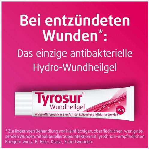 Tyrosur® CareExpert Wundgel ist zur Unterstützung während des natürlichen Wundheilungsprozesses bestimmt. Sollten sich Ihre Beschwerden verschlimmern oder keine Besserung eintreten, suchen Sie bitte Ihren Arzt oder Apotheker auf.